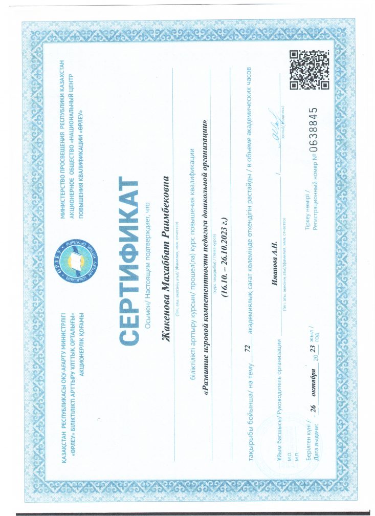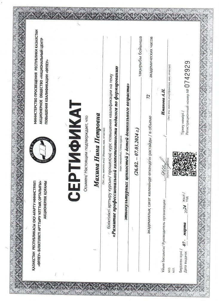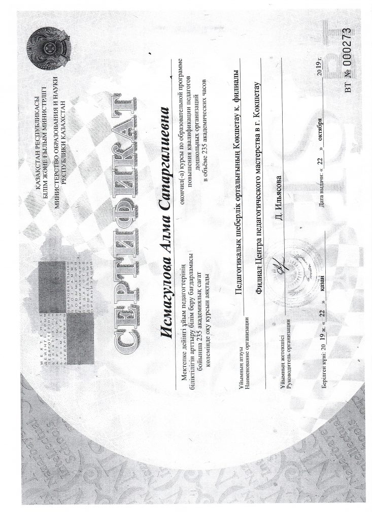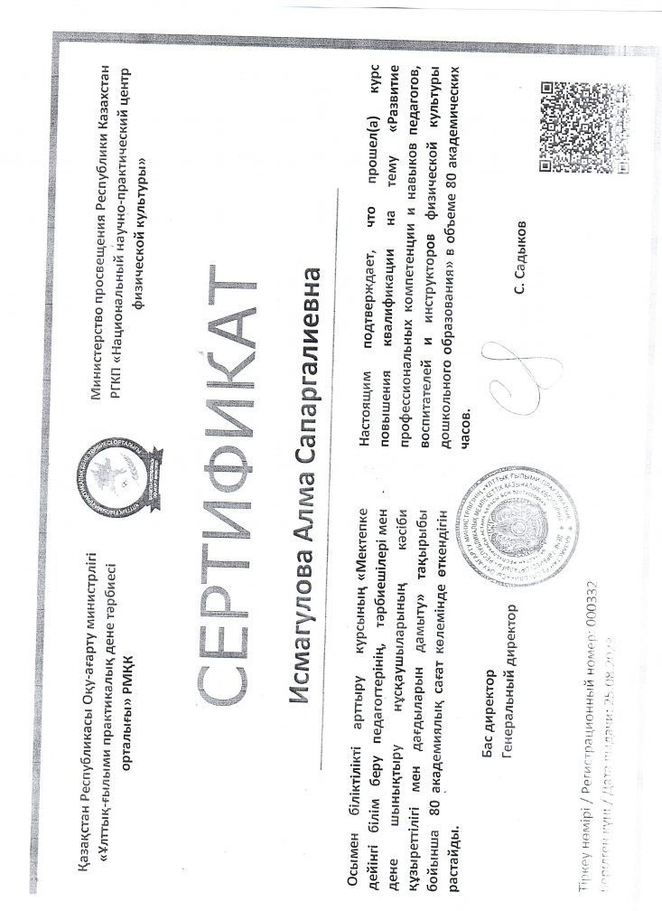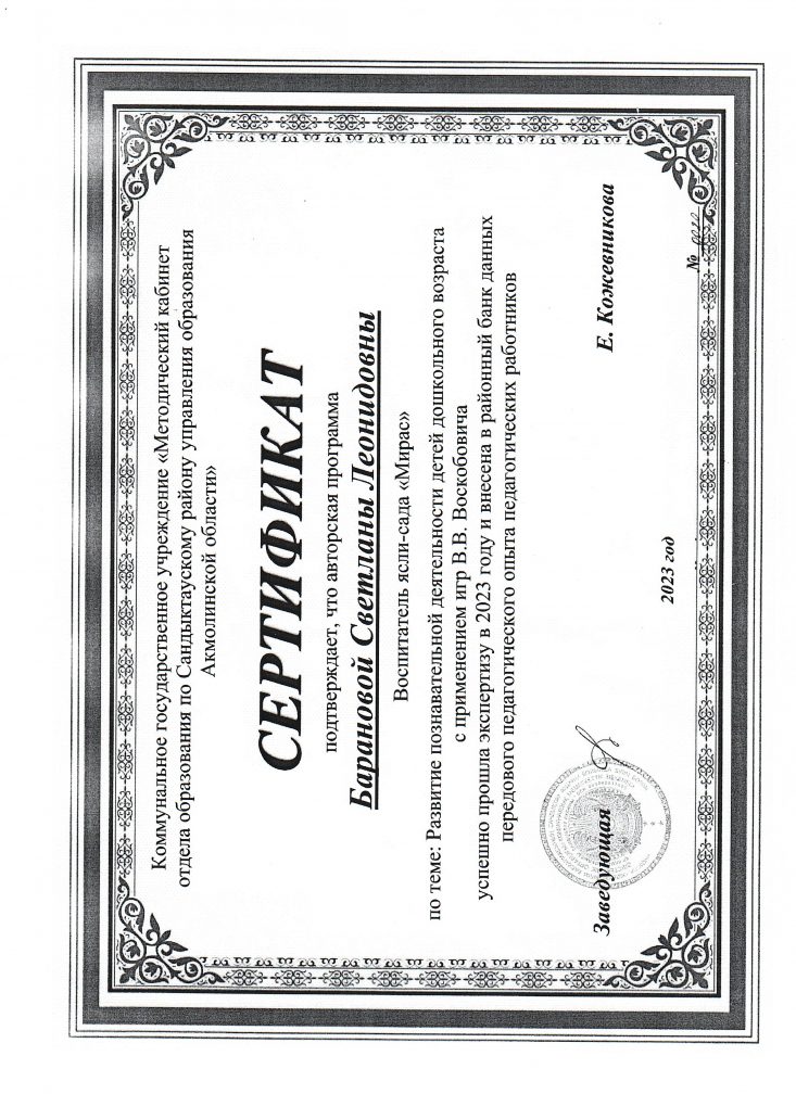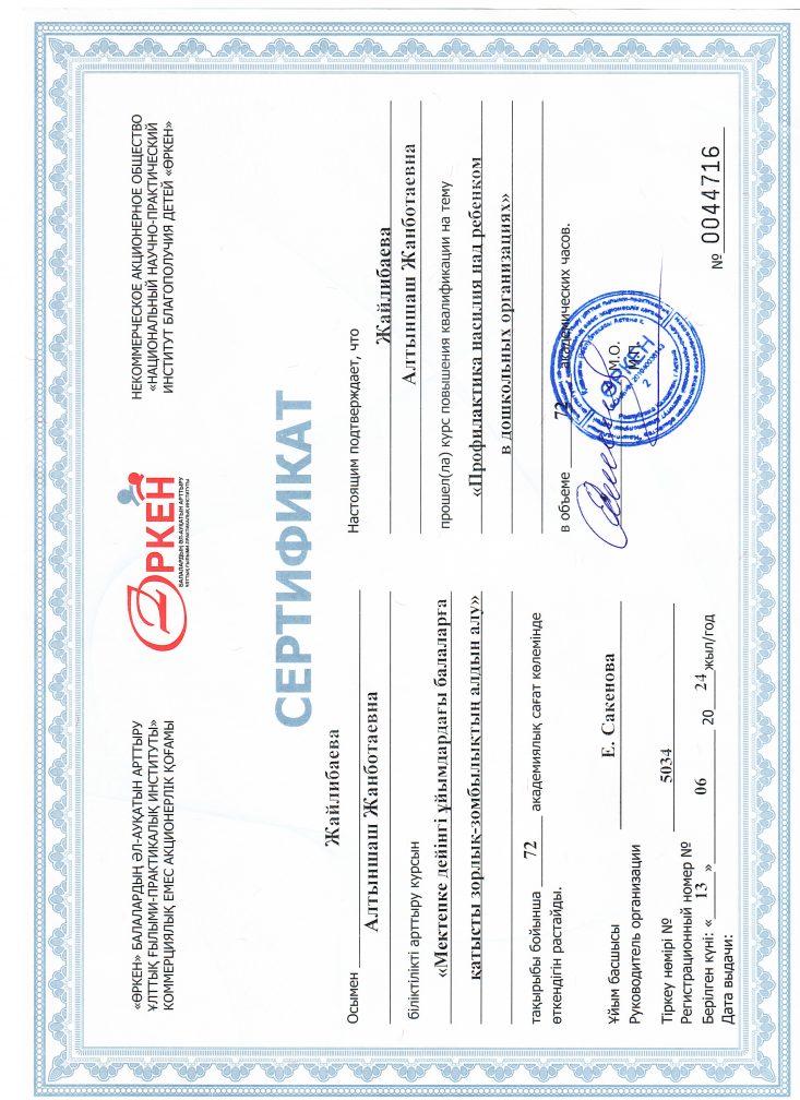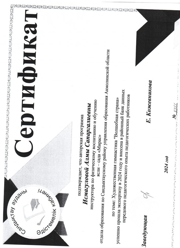 Государственное коммунальное казённое предприятие"Ясли- сад "Мирас" села Балкашино при отделе образования по Сандыктаускому району управления образования Акмолинской области"