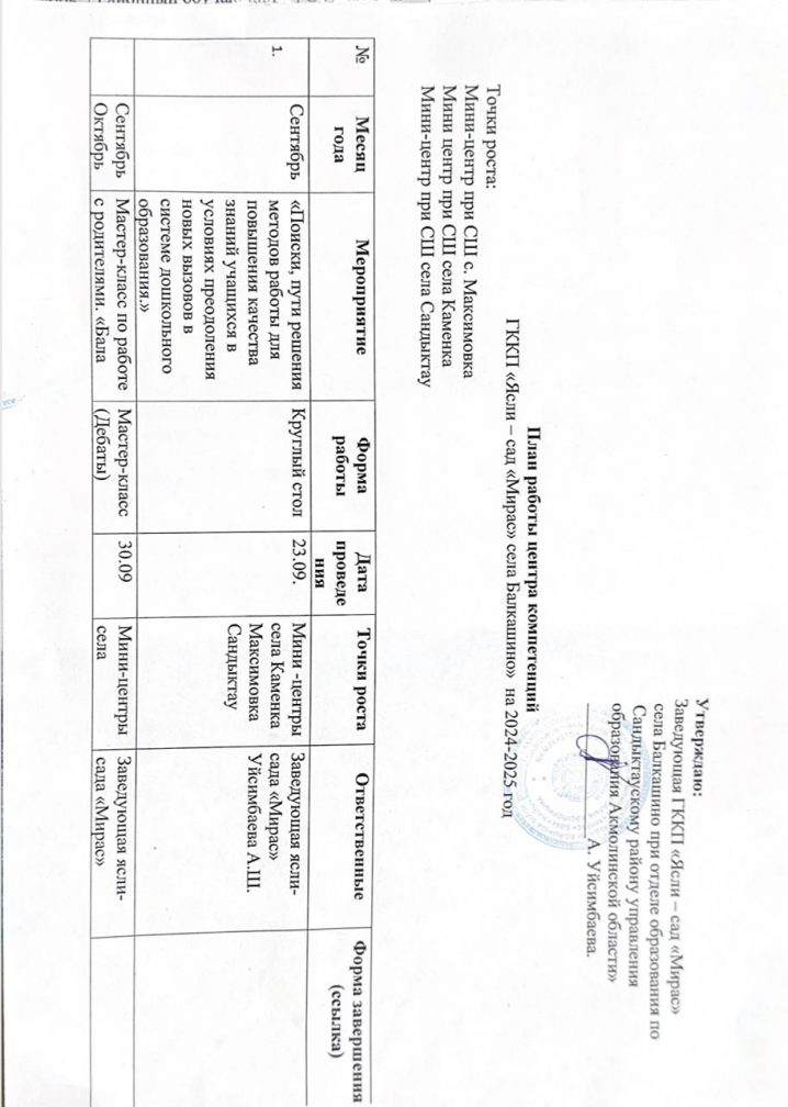 Құзіреттілік орталығының жұмыс жоспары