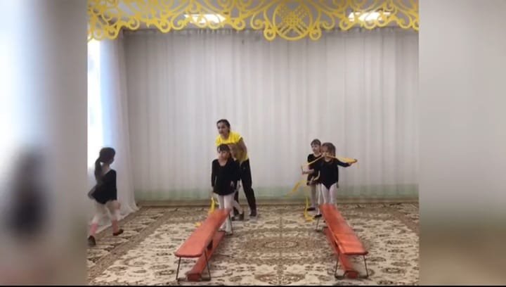 "Барлығына қолжетімді сапалы білім" Жол картасын іске асыру шеңберінде көркем гимнастика бойынша "Арт-балабақша" эксперименттік алаңы жұмыс істейді. Ортағы топта көркем гимнастика сабағы өткізілді. Гимнаст қыздары гимнастикалық орындықта лентамен...