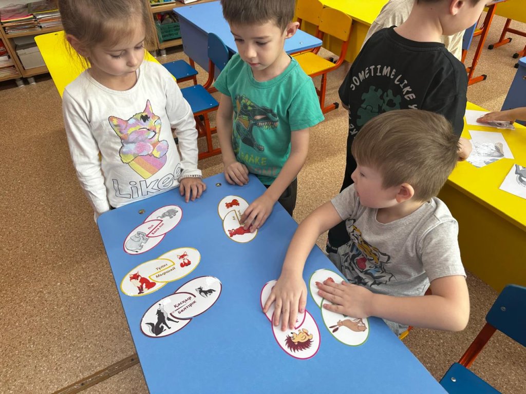 Дайындық тобында ұйымдастырылған іс-шаралар, дауысты және дауыссыз дыбыстарды зерттеуді жалғастырамыз, сөздерді дыбыстық талдау кезінде дыбыстардың түс белгісін бекітеміз.