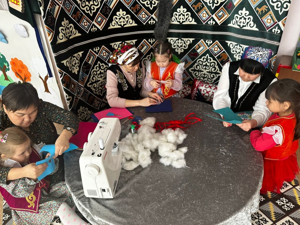 “Біртұтас тәрбие” бағдарламасы негізінде “Аналар мектебі " жобасы бойынша ұлттық отбасылық мүдде құндылықтарын іске асыру мақсатында аналармен бірлесе отырып жасалған қолөнер жұмыстары.