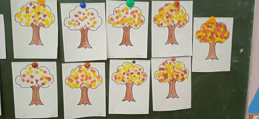 Дайындық тобының балалары "күзгі ағаш" аппликациясын жасады. Ерекше пішіндегі қиял жапырақтары қызығушылықпен жабыстырылды. Екі жарқын түстерді қолдана отырып, жұмыстар жарқын болып шықты және бұл балалардың көңіл-күйіне әсер етті.