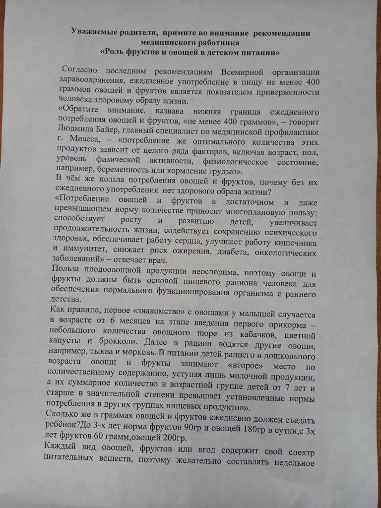 «Балалардың тамақтануындағы жемістер мен көкөністердің рөлі»
