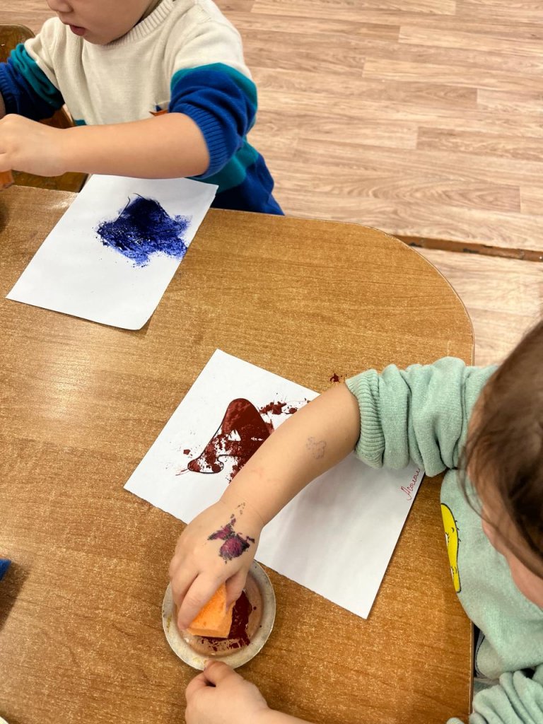 Ортаңғы топта бояулармен сурет салу. Тақырыбы: «Рукавичка». Біз бояудың екі түсін қолдануды үйренеміз, бір түсті бояуды қолданғаннан кейін щетканы шаюды үйренеміз. Ертегінің сюжеті, кейіпкерлері, жыл мезгілі туралы білімдері бекітіледі. Біз мейірімділікке,...