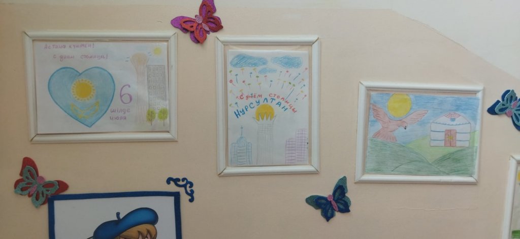 Жоғарғы топ оқушылары Астана күніне арналған суреттер көрмесін дайындады.