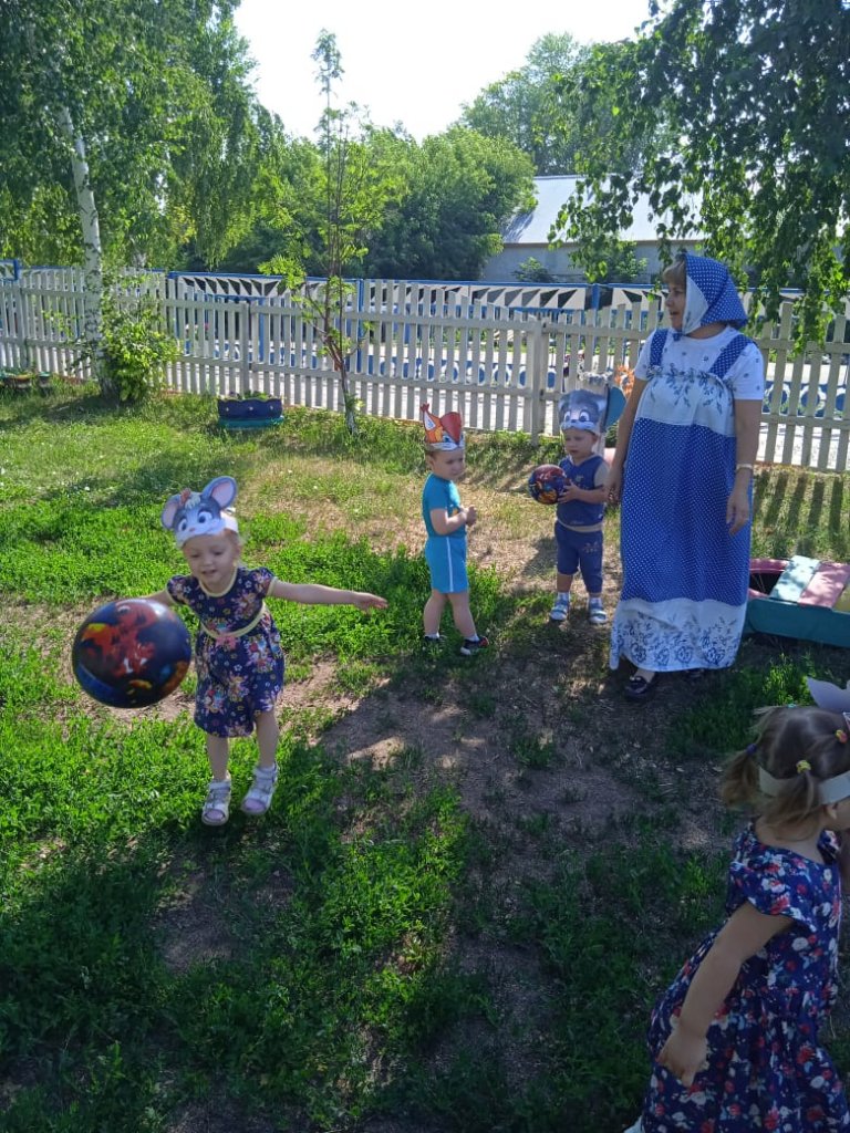 Кіші топта балалар бетперде киіп, жануарлар болып реинкарнацияланды, таза ауада ойындар ойнады. Олар Машаға саңырауқұлақтарды себеттерге жинауға белсенді түрде көмектесті. Олар сылдырмашты оятып, сосын жасырды.Олар түрлі-түсті шарларды қуып жетіп көңілді болды....