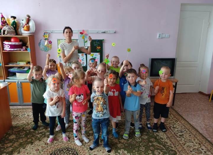 Үлкен топта «Гүлдер әлемі» гүлдер туралы әңгіме жүргізілді. Балалар гүлдер туралы ғибратты фильмдер көрді, өлеңдер мен ертегілер тыңдады, жұмбақтарды тапты, иллюстрацияларды, ашық хаттарды, гүлдер туралы кітаптарды тамашалады. Осыдан кейін балалар қуана сурет...