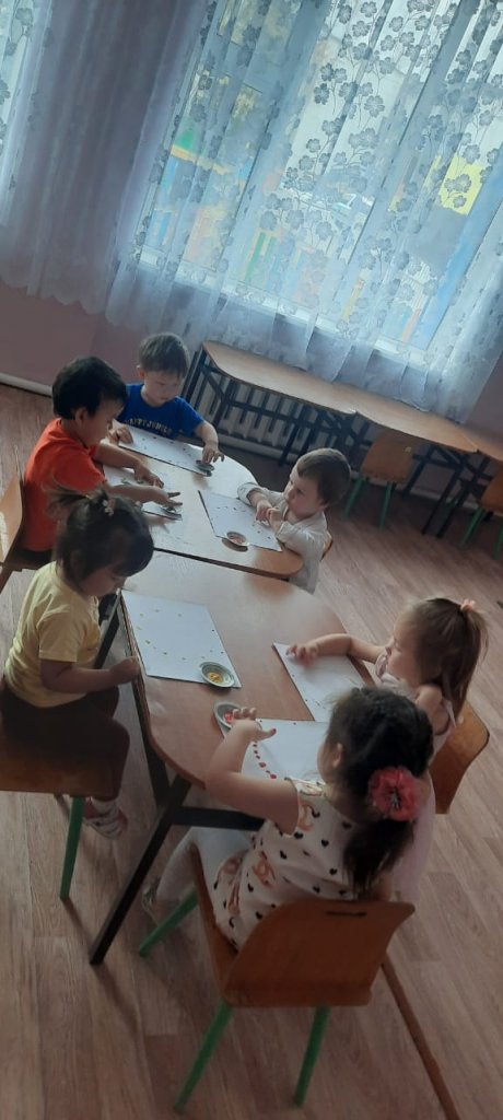 Бүгін екінші кіші топта дәстүрлі емес тұрғыда сурет салу өткізілді.Балалар саусақтарымен жұмыс жасай отырып түстерді де меңгерді. Балалар өз жұмыстарын ұқыпты әдемі жасауға тырысты және жұмыстарын аяғына дейін жеткізе алды.