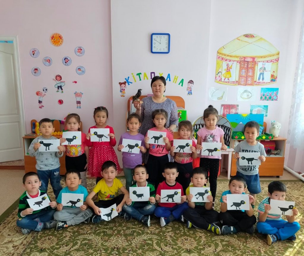 "Түймедақ" ересек қазақ тобында жапсыру сабағы өтті. Тақырыбы: "Қоныс аударатын құстар".