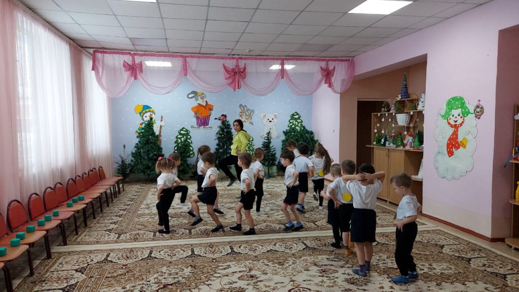 Үлкен топта «Түлкіге қонаққа бару» дене шынықтыру сабағы өтті. Балалар ертегіге барып, түлкімен бірге түрлі кедергілерден өтті. Балалар белсенді түрде қатысып, үлкен қуат алды. Соңында «Қойшы мен отар», «Әткеншек» атты қызықты ойындар өткізілді.