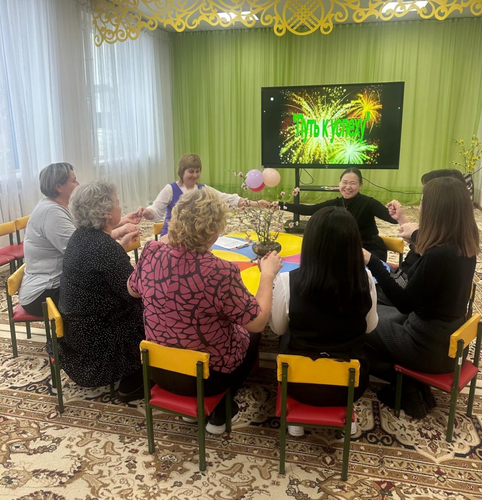 Мұғалімдермен тренинг 'Табысқа жетудің кілті' бір-бірімен сөйлесуге, эмоцияларымен бөлісуге мүмкіндік берді. Мақсаты: коммуникативтік құзыреттілікті, өзін-өзі тану дағдыларын, эмоционалды тұрақтылықты дамыту, өзін-өзі бағалау мен өзіне деген сенімділікті арттыру, табысқа саналы түрде ұмтылу және кәсіби қиындықтарды жеңу.