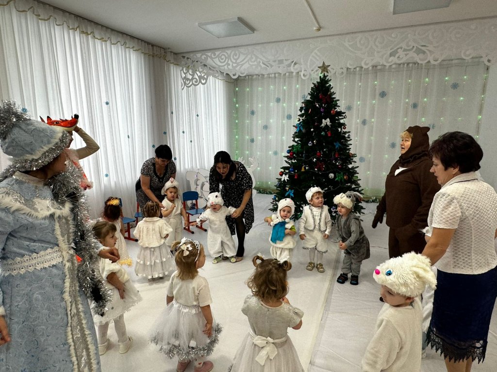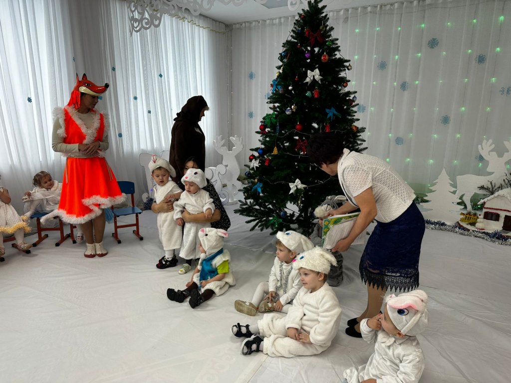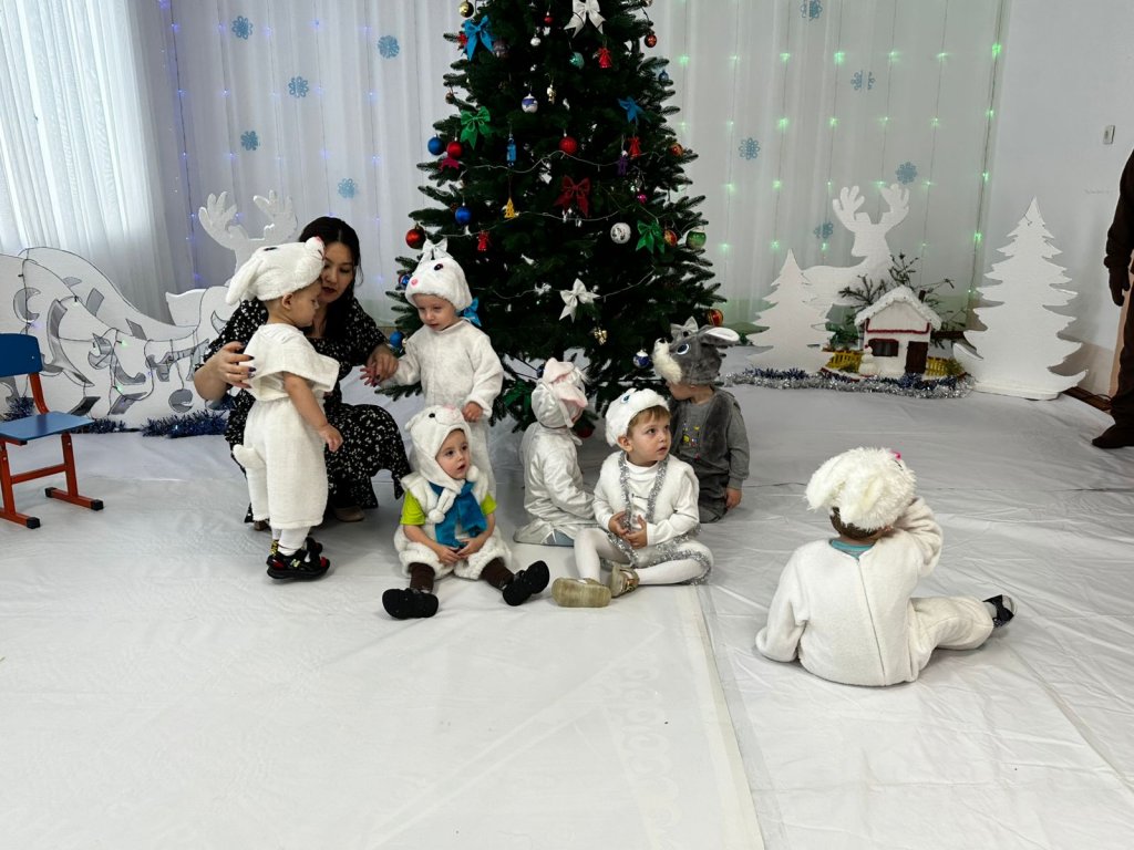 "Күншуақ" кіші тобында жаңа жылдық мереке өтті. Орман алқабында балалар орман тұрғындарымен - қоянмен, аюмен және түлкімен кездесті. Олар балалармен бірге көңіл көтерді. Ал Айлакер түлкі енді ормандағы қояндарды ренжітпеуге уәде берді. Аяз Ата мен Ақшақар бәріне достасуға көмектесті. Балалар қуана ән айтып, би билеп, көңілді ойындар ойнады. Ең бастысы, сиқырлы команың көмегімен балалар тосын сый тапқан кезде пайда болды - ойыншықтар мен тәттілер.