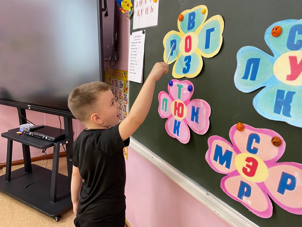 Дайындық тобында ұйымдастырылған іс-шаралар, дауысты және дауыссыз дыбыстарды зерттеуді жалғастырамыз, сөздерді дыбыстық талдау кезінде дыбыстардың түс белгісін бекітеміз.