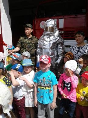 Сегодня, 7июня 2018 года воспитанники детского сада «Мирас» посетили пожарную часть Сандыктауского района. Встретив ребят,   инспектор  провел для них экскурсию по пожарному депо, рассказал о службе и быте пожарных. Дети ознакомились с помещениями, где расчеты караула занимаются, тренируются, местами отдыха огнеборцев. Большой восторг у ребят вызвала специальная техника, они с интересом слушали рассказ об оборудовании, находящемся в отсеках пожарного автомобиля, чем он оснащен и как используется на пожаре. Расчет дежурного караула продемонстрировал экскурсантам сбор и выезд по тревоге на пожар. В завершении экскурсии ребята попробовали тушить условный пожар при помощи ствола РСК-50.