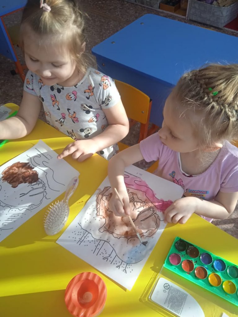 Мақсаты: қоршаған заттар мен табиғат объектілерінің түстері мен реңктері туралы түсініктерін байыту. Тапсырма: қажетті түсті алу үшін бояуларды араластырады..
