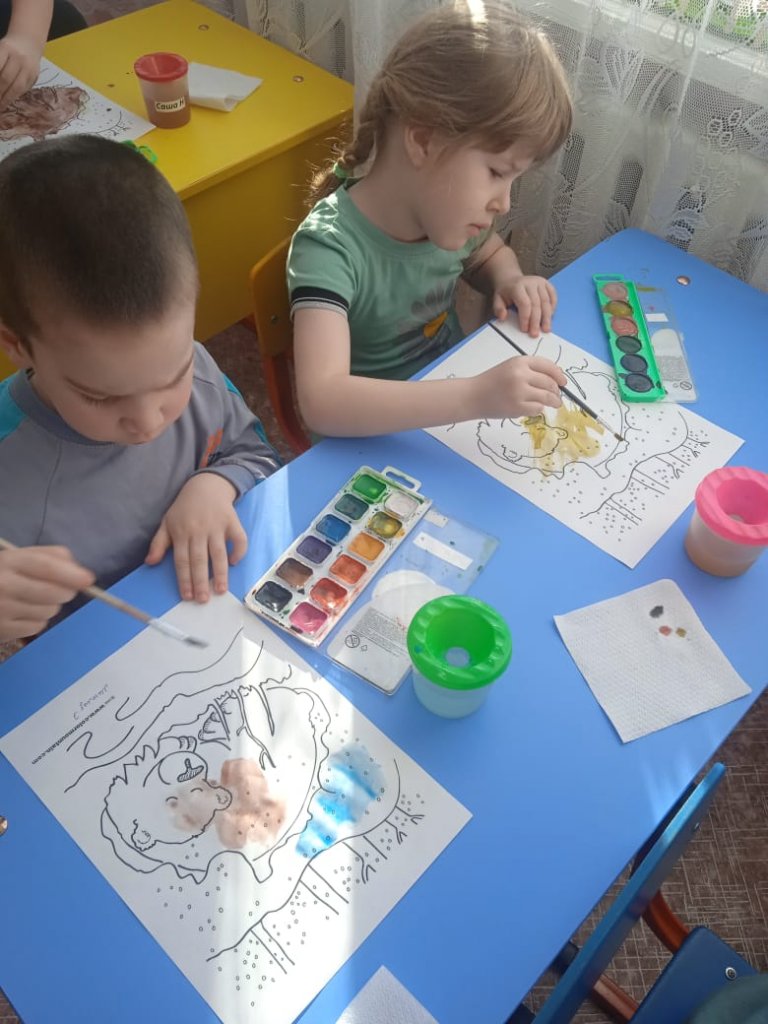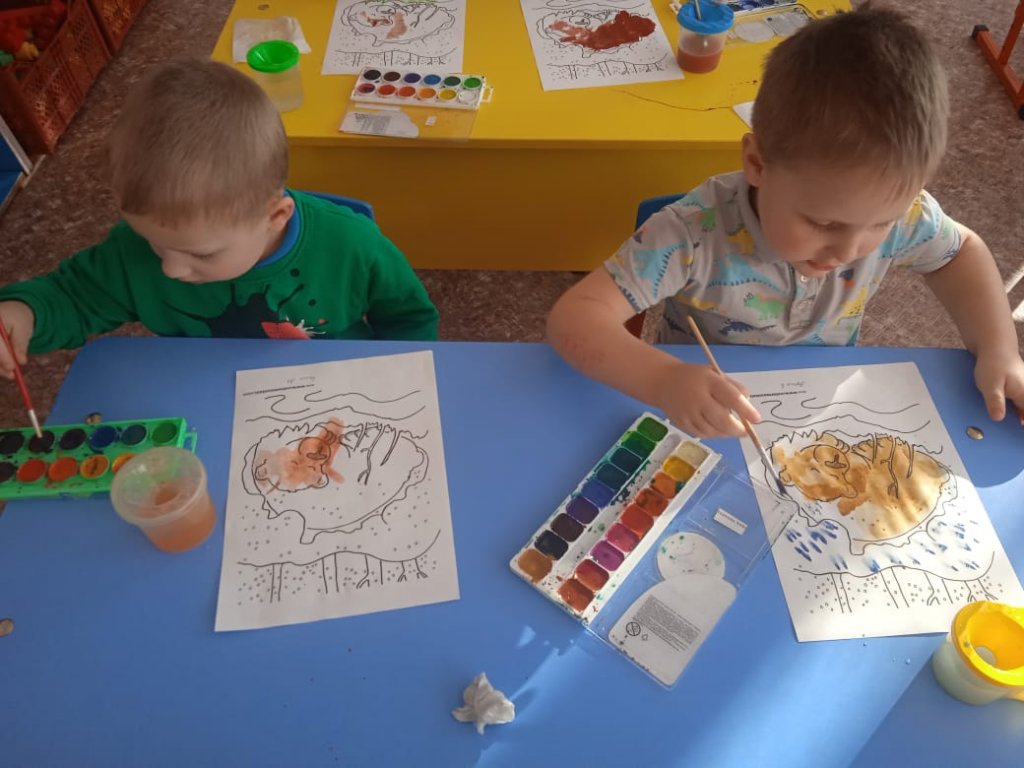 Сурет салу бойынша ойын әрекеті "Аю ұяда ұйықтайды".