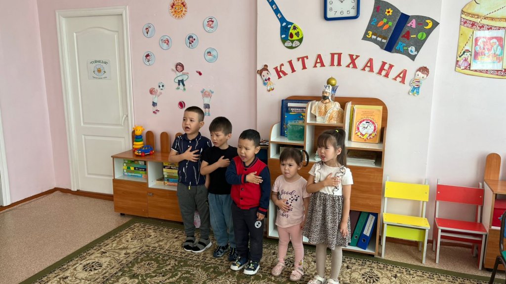 Мемлекеттік Әнұран орындалған сәт – бүлдіршіндердің жүрегіне отансүйгіштік сезімін ұялататын ерекше кезең.