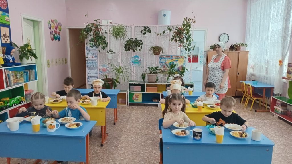 Біздің балалардың тамақтануы толық, азық-түліктің құрамына қарай әртүрлі және өсіп келе жатқан дененің негізгі азықтық заттарға деген физиологиялық қажеттілігін толық қанағаттандырады. Балабақшадағы тамақ үйдегі тамақтан ерекшеленеді, сондықтан ата-аналар баланы алдын ала дайындап, оны қарапайым және пайдалы тамаққа – сорпаларға, ботқаларға, салаттарға және т.б. үйреткені жөн.