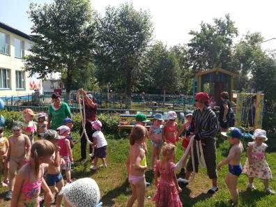 Наши малыши очень ждут лето, мечтают поехать на море с родителями. Воспитатели и специалисты детского сада «Мирас» хорошо знают, как занять ребят. Лето-это пора отдыха и праздников. Одним из самых популярных праздников летнего периода является «День Нептуна». Прекрасная летняя погода позволила работникам детского сада организовать и провести этот веселый детский праздник. В гостях у воспитанников детского сада побывали Нептун, разбойники, которые погрузили детей в атмосферу сказки. Специально организованные игры и конкурсы способствовали созданию праздничного настроения и проявлению положительных эмоций. Дошкольники получили возможность проявить смелость, доброжелательность, настойчивость в достижении результата. Так как ситуация со здоровьем детей продолжает оставаться главной стратегической проблемой в области образования, вся организация жизнедеятельности ребёнка в детском саду «Мирас» имеет оздоровительную направленность. Проведение этого летнего праздника принесло детям не только массу положительных эмоций, а также способствовало закаливанию их организма. Сказочный персонаж Нептун обрызгивал всех детей теплой водой. Так же, большую радость детям доставили игры с водой, которые благоприятны для всестороннего физического развития и оздоровления ребенка.