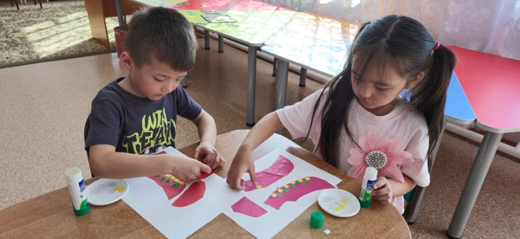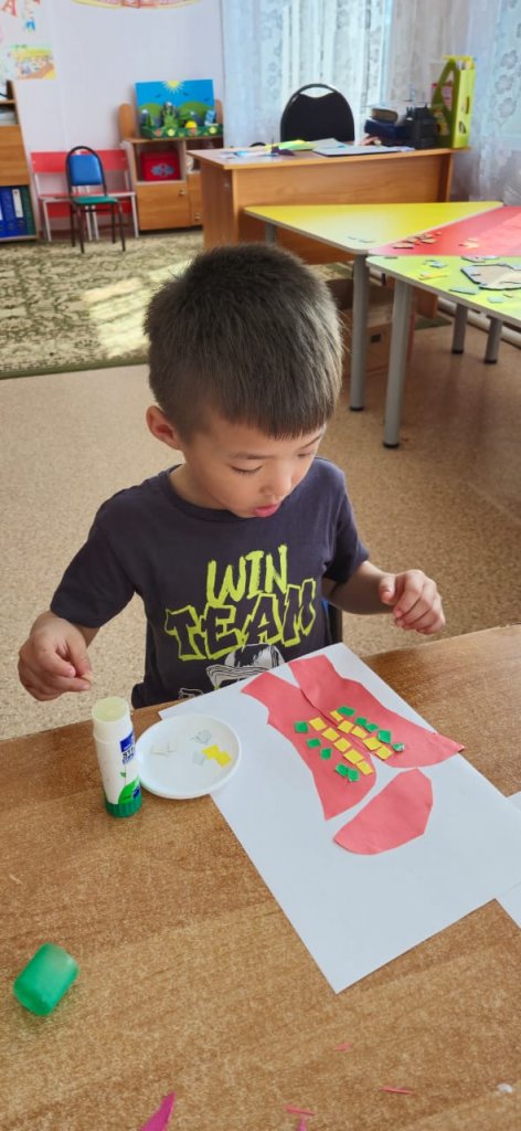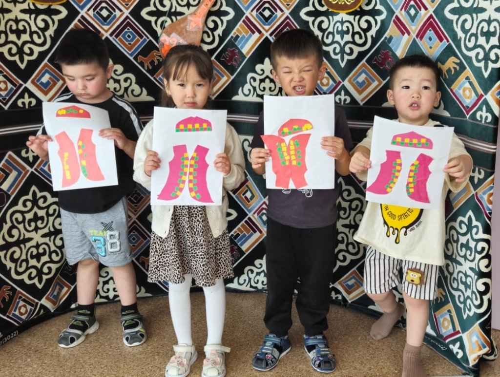Ересек тобының балалары тақия мен қамзолды әшекейледі. Ұлттық киімдерді түрлі-түсті пішіндермен безендірді. Әр бала әдемі әрі ерекше жұмыстар жасады.
