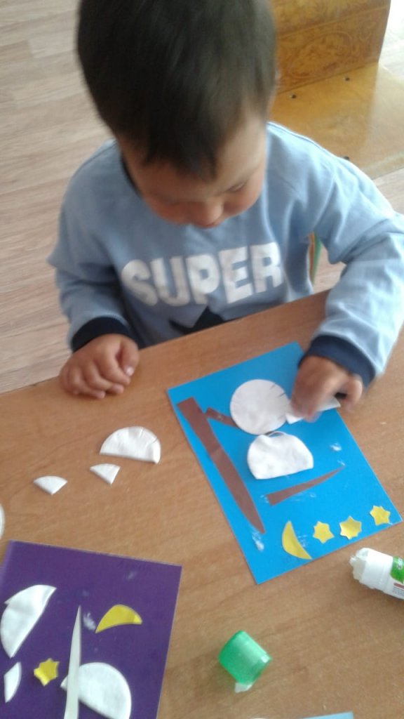 Кіші топтарда жазғы кестеге сәйкес сабақтар өткізіледі, модельдеу, аппликация және сурет сабақтары балалар үшін ерекше қуанышты. Мұғалімдер сурет салудың инновациялық әдістерін жұмысқа әкеледі. Мақта төсеніштерін қолдану дәстүрлі емес материалдарды қолданатын дәстүрлі емес әдіс. Дәстүрлі емес сурет салу техникасы - пуантилизм (мақта тампондарымен сурет салу).