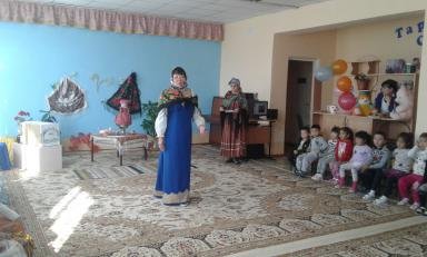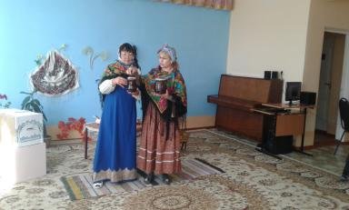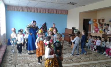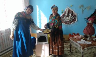 гости к «Русской избе» пригласили двух бабушек, они рассказали детям о предназначении русской печи, о горшочках с кашей, о толстопузом самоваре и о деревянной ложке. На протяжении всего праздника звучали русские народные мелодии, а также дети рассказывали пословицы, водили хоровод. Дети были наряжены в русские народные костюмы, плясали под звуки гармошки и балалайки. А какой праздник без сюрприза? В русской печи на сковороде румянились блины, восторг и восхищение вызвало у детей убранство русской избы. Гости праздника ушли с весёлым настроением, поблагодарив русскую печку.