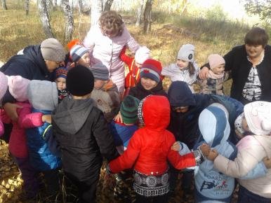 Целью нашей прогулки было наблюдение за сезонными изменениями в начале осени, а также формирование понятия о смене времени года.