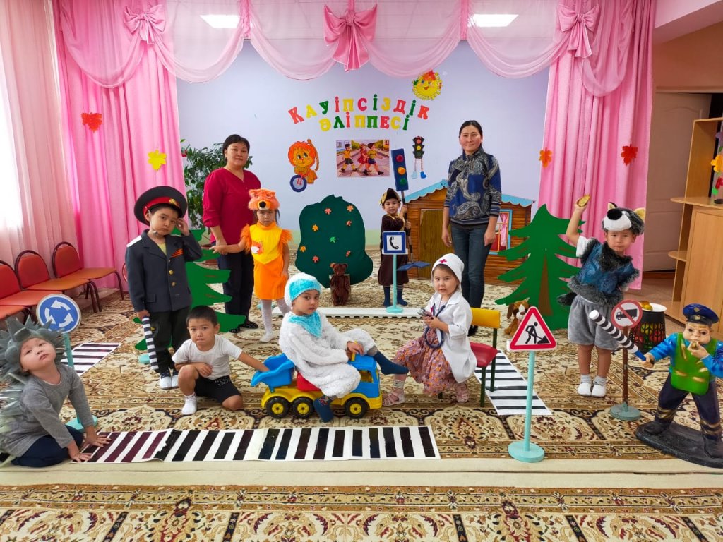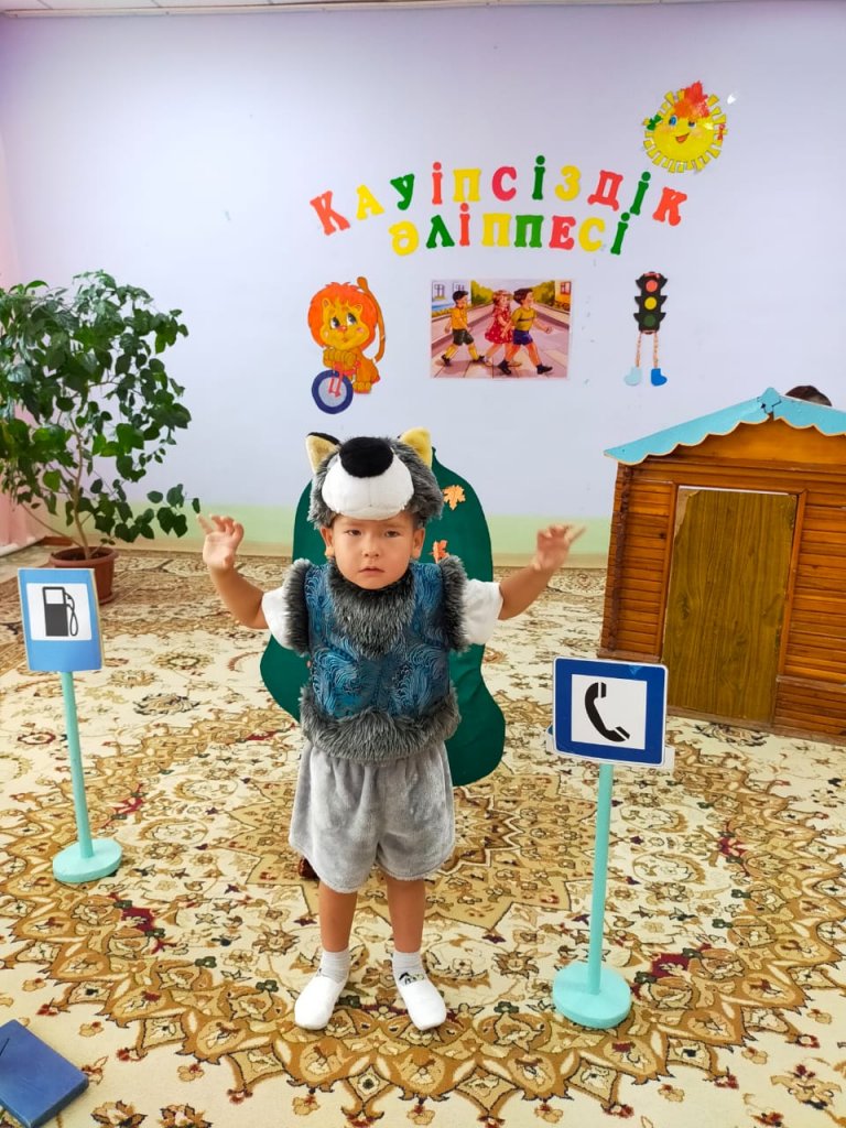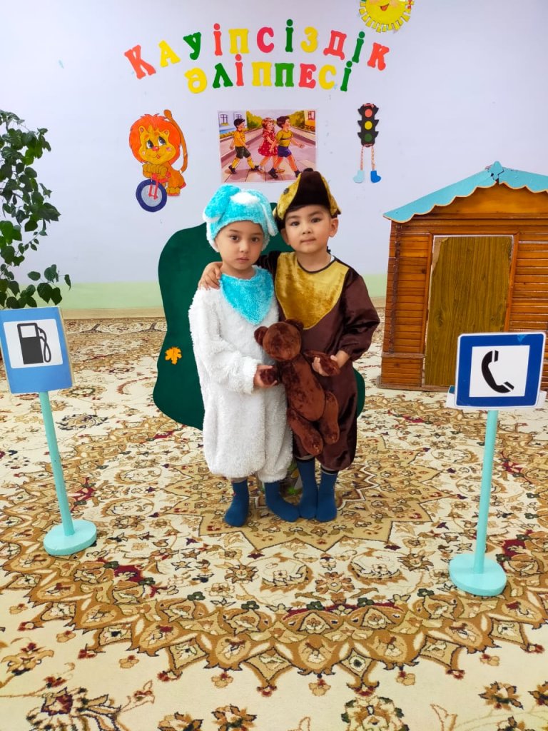 Ересек қазақ тобында Шурманова Дәметкен Ғалымқызы мен Қожабекова Вайда Қалқаманқызының ұйымдастыруымен «Қауіпсіздік әліппесі» атты ертегі балалардың қатысуымен өткізілді. Күн суытып, жануарлар орман ішіндегі үйшікке жолға шығады. Кірпі айналмалы жолды іздесе, аш қасқыр тамақтанатын асхананы іздейді. Түлкі көмек сұрап хабарласатын телефон іздеп, сол белгіні табады. Аяғын жарақаттаған қоян ауруханаға барып, алғашқы көмек алады. Жол тандамайтын, ешкімді тындамайтын аю жүк көлігімен тыйым салынған жерден өтіп, жол полициясы құжаттарын алып қояды. Құжатын қайтару үшін жүк көлігімен өтуге рұқсат етілген белгіні тауып, сол жолмен аман-есен үйшікке жетеді. Барлығы үйшікте тату тәтті өмір сүреді. Балалар ертегіні жақсы ойнап шықты.