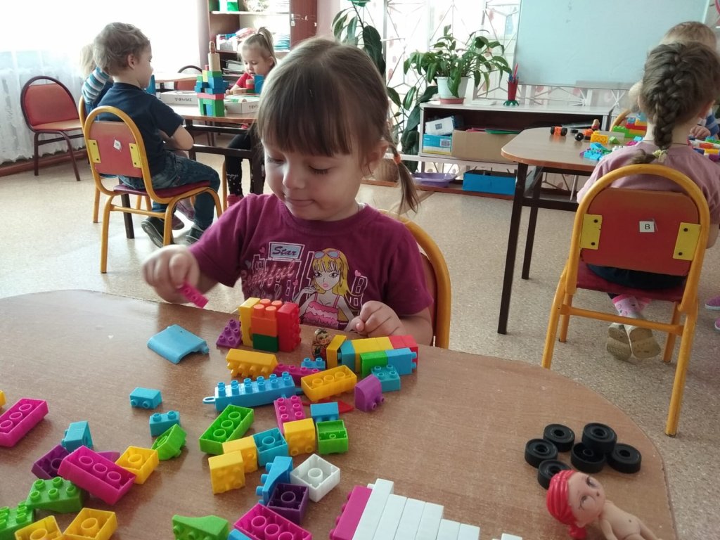Құрастыру сабағында орта топтың балалары бөлшектердің түсін, пішінін, өлшемін бекітеді. Берілген тақырып бойынша және өз дизайны бойынша ғимараттар салуды үйренеді. Әртүрлі құрылыс жинақтарымен жұмыс істеу балаларға әрқашан қуаныш әкеледі.