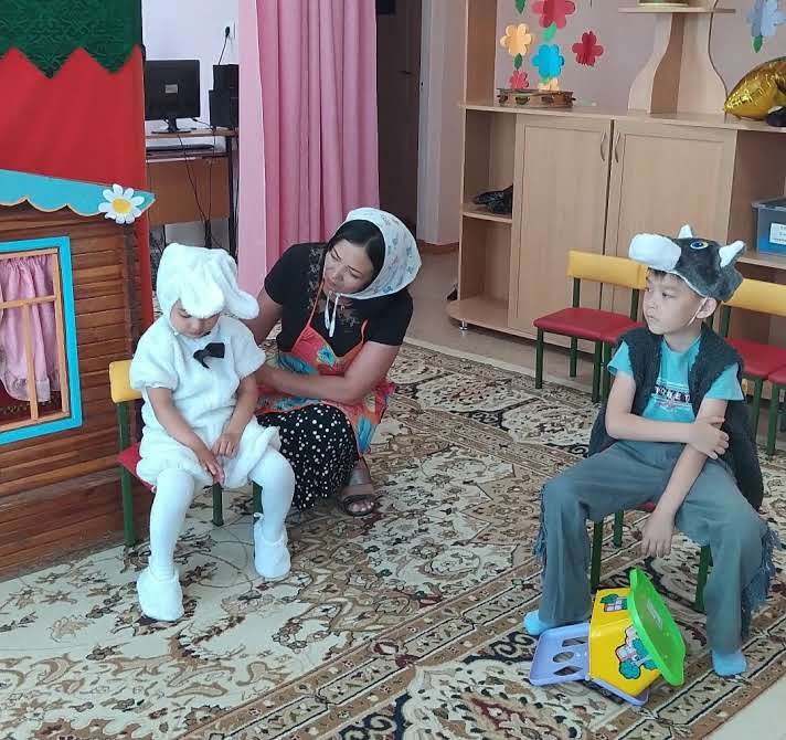 Үлкен топта «Кішкентай қоян» ертегісі бойынша сахналау көрсетілді. Бұл ертегі балаларды мейірімділікке, тілалғыштыққа, жанашырлыққа баулиды. Қиын кездерде әрқашан достарыңызға көмектесе біліңіздер, сондай-ақ үлкендердің кеңесін тыңдай білініздер.