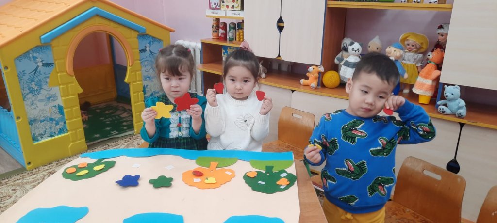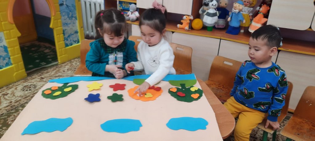 Екінші кіші топппе  бірге балалардың қол маторикасын шынықтыра отырып және де түстерді ажырата білуін қалыптастыру.