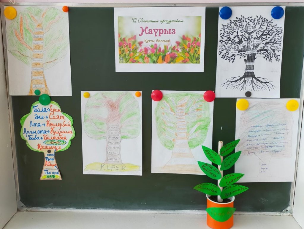Ересек қазақ тобының балалары шежіре ағашын жасап, жеті аталары туралы айтып берді.