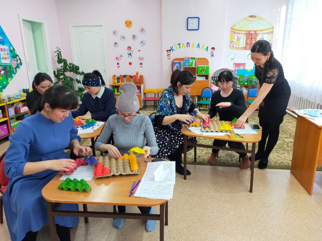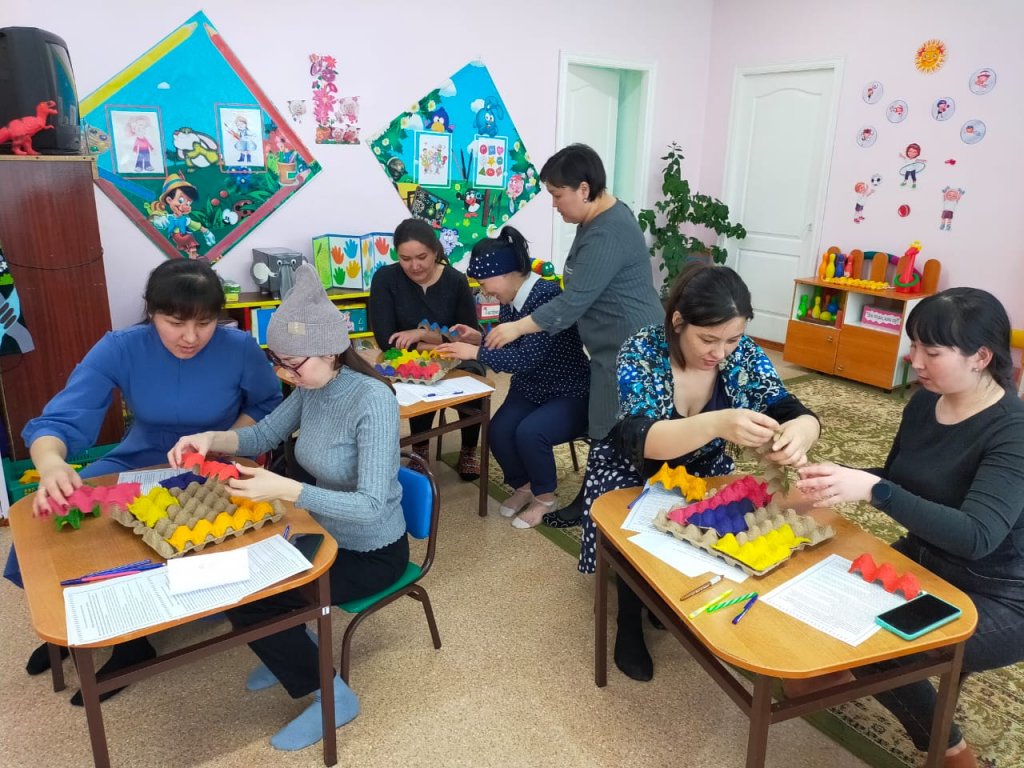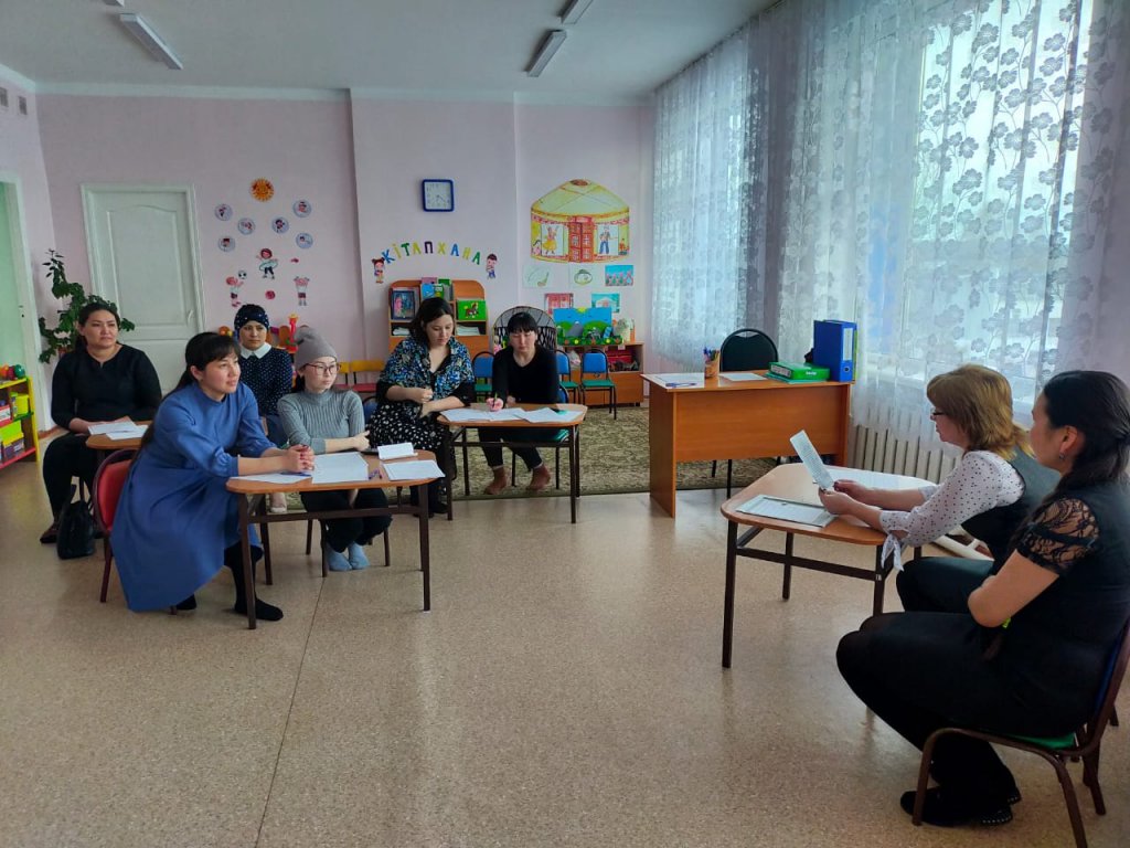 Ересек қазақ тобында «Ойын және ойыншықтардың бала өміріндегі алатын рөлі» тақырыбында ата-аналар жиналысы өтті. Жиналыста тақырып бойынша баяндама оқылды. Ата-аналар «Үй жағдайында балалар қандай ойындар ойнайды?» анкетасы толтырып, сұрақтарға жауап берді. Психолог маманы Ашуркова Т.М. баяндама оқып, ата-аналарға «Балалар неге ойыншықтарды сындырады?» кеңес парақшасын таратты. Тәрбиешілер Шурманова Д.Ғ. және Қожабекова В.Қ. ата аналарға балалардың күнделікті қандай ойындармен ойнайтынын айтып, сабақ барысында қолданатын ТРИЗ технологиясы бойынша құрастырылған ертегіні карточкалар бойынша ойлап тап, пазл құрастыру, жүйелік оператор, карусель, тамаша баспалдақ, Лулии шеңбері ойындарын көрсетті.