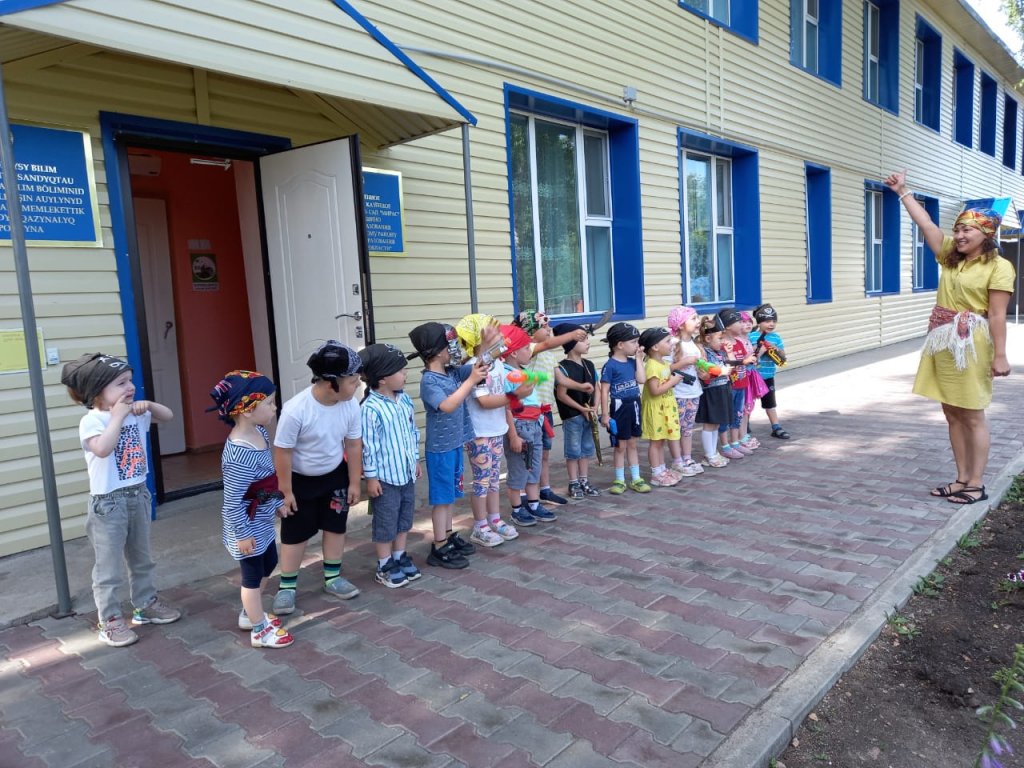 Ересектер және дайындық топтарында " теңіз қарақшылары-көңілді балалар!"Бұл іс-шараның мақсаты достық қарым-қатынас орнатуға ықпал ететін жағымды көңіл-күй мен приключение қуанышын қалыптастыру.