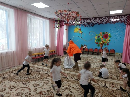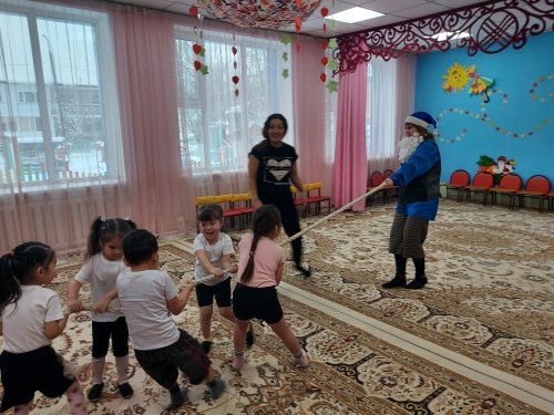 Ересек топтарда спорт мерекесі өтті. Бастапқыда балалар денсаулық үйірмесінен өтті. Одан кейін Гноммен бірге би гимнастикасы мен «Таспалы қақпан», арқан тарту сияқты ойындар ойнады. Түлкімен «Қар үйіндісі» ойыны ойнады. Балалар белсенді қатысып, жағымды эмоциялардың үлкен зарядын алды.