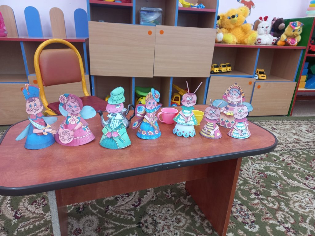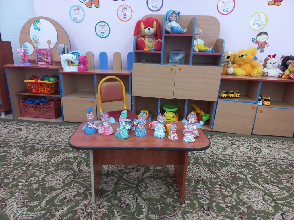 Ортаңғы топта «Шыбын-сокотуха» ертегісін сахналаудан өтті. Мақсаты: Балалардың шығармашылық қабілеттерін дамыту, интонациялық өрнектерді, ым-ишараны, мимиканы пайдалана отырып, ертегі сахналай білуге баулу, әлсіздерге, қорғансыздарға аяушылық сезімін ояту.