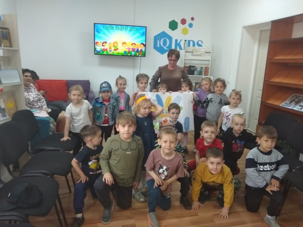 Бүгін үлкен топтың балалары аудандық кітапханаға барып, кітапхана қызметкерлері балаларды қорғау күніне арналған ойын-сауық өткізді.