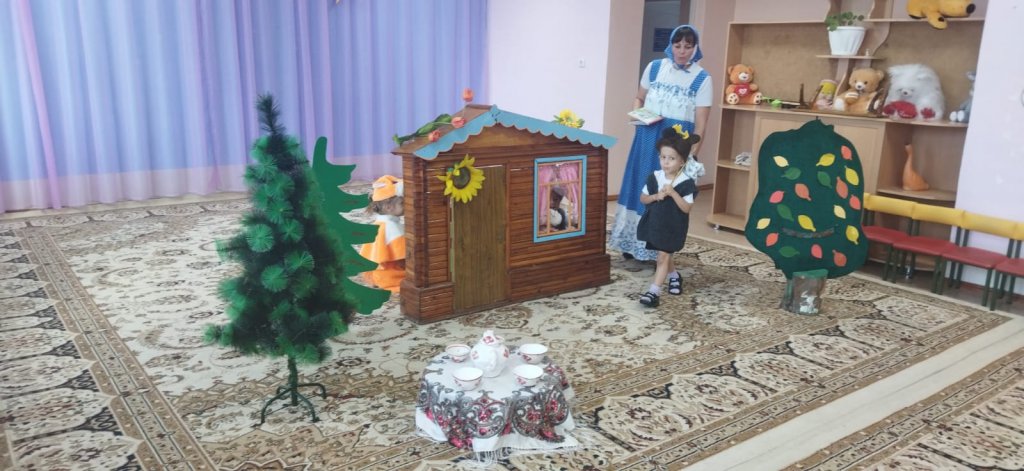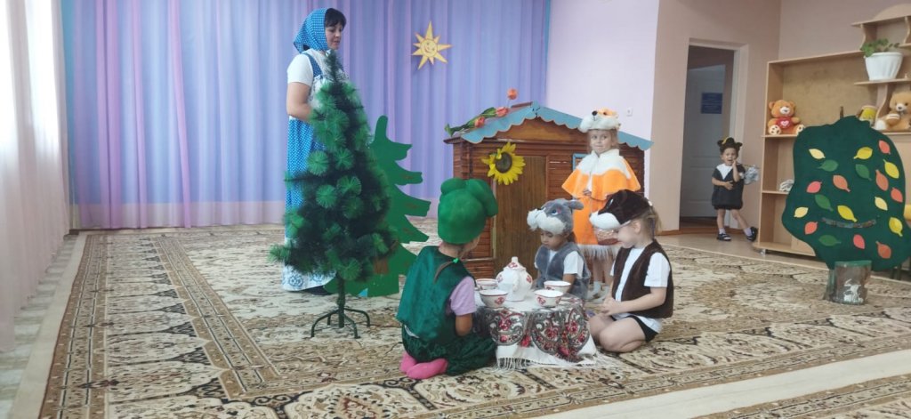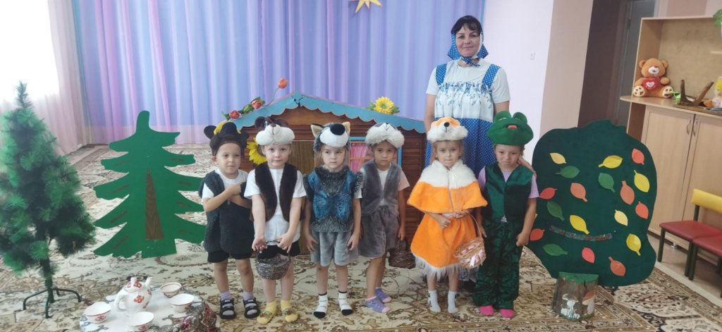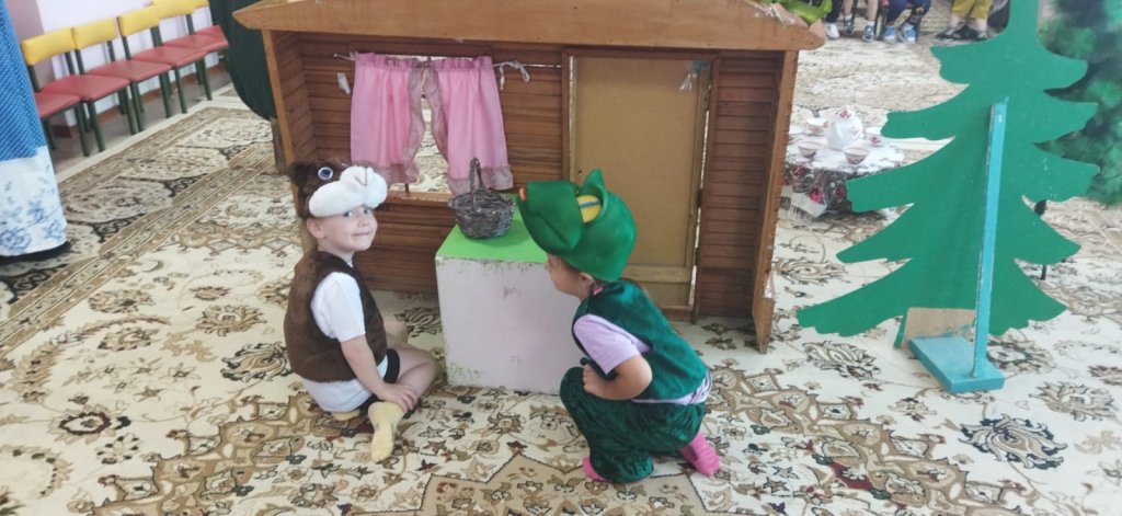 Үлкен топтың оқушылары мұғаліммен бірге балаларға «Теремок» ертегісін көрсетті. Кішкентай актерлар ертегі кейіпкерлері болып реинкарнацияланып, нағыз кәсіпқойлар сияқты ойнады. Бұл жігіттердің алғашқы өнер көрсетуі. Дебют тамаша болды. Барлығына әңгіме өте ұнады.