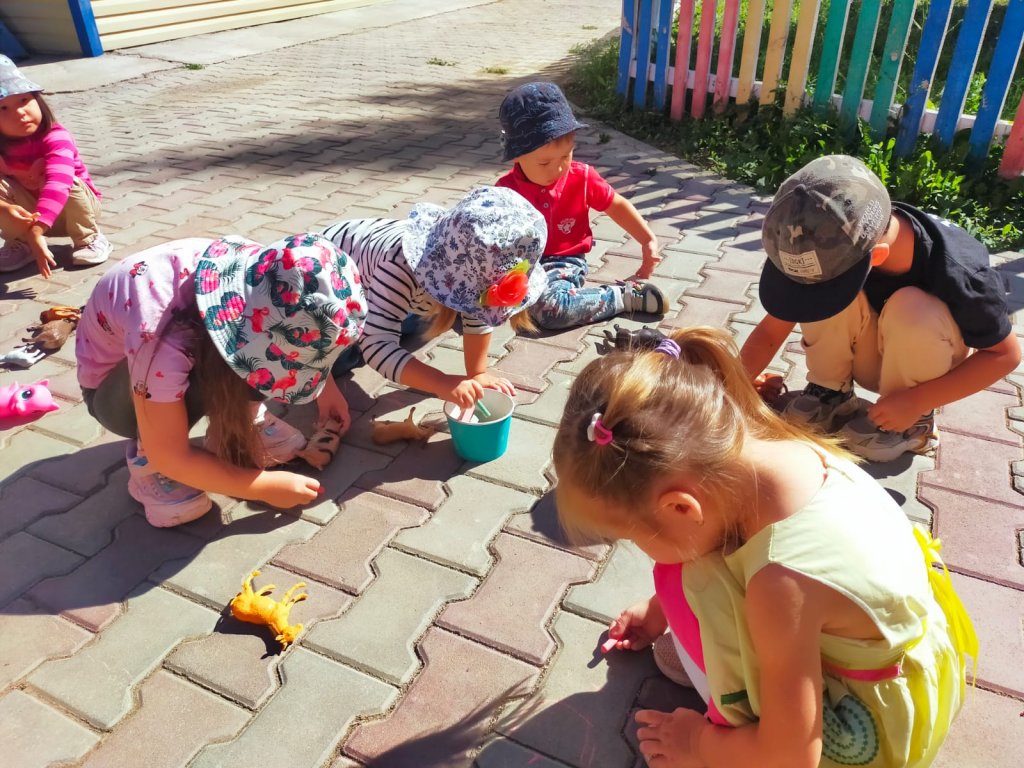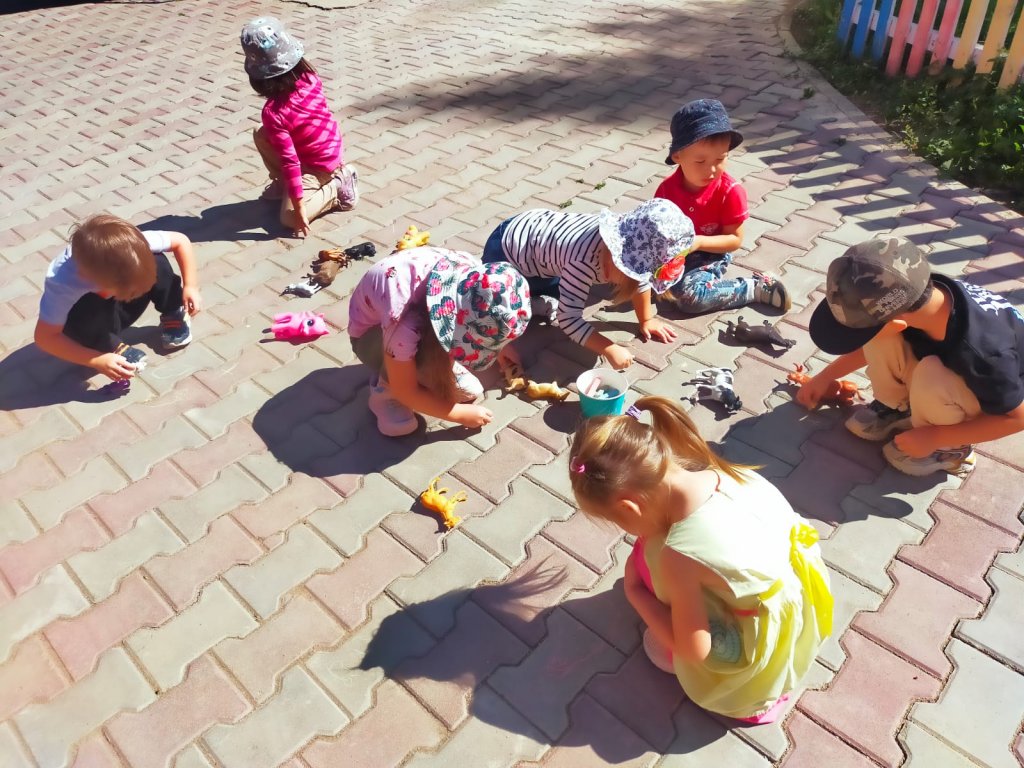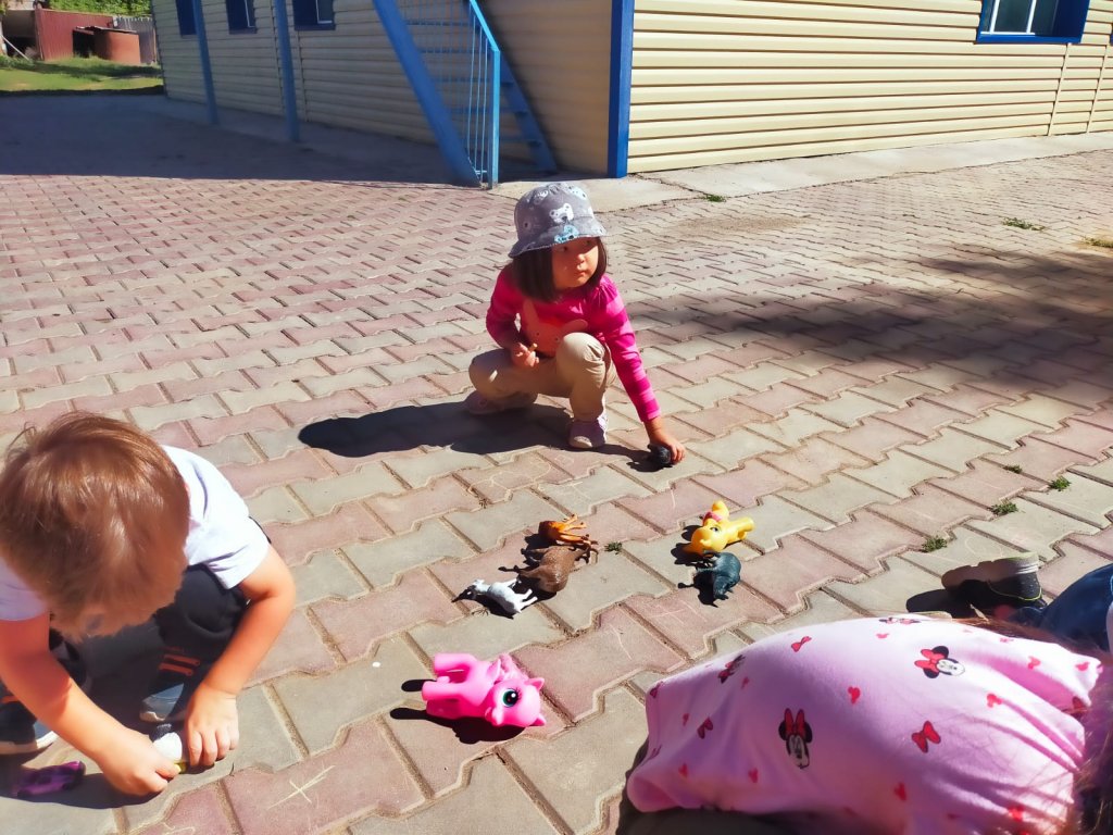 Серуен кезінде сурет салудың дәстүрлі емес әдістерін қолдану «Жануарларды көлеңке арқылы сал».Бұл жұмыс түрі балалардың қиялын жақсы дамытады, өнерге деген сүйіспеншілікті оятады, жануарларды зерттеуге қызығушылықтарын арттырады.