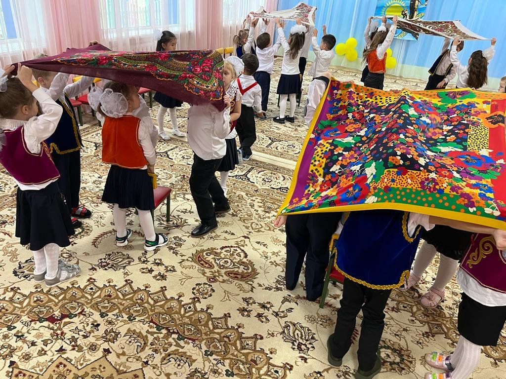 Қыздар қазақтың халық биі Қамажай, бала Қора жорға биін биледі. Олар өздерінің сүйікті ойындарына қатысты: киіз үй, бәйге, арқан тарту.