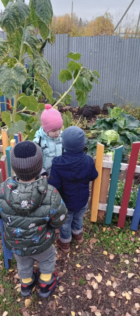 Ортаңғы топта бақылау.Балалар дайындық тобының бақшасында болып, қырыққабат пен күнбағыстың қалай өсетінін тамашалады.