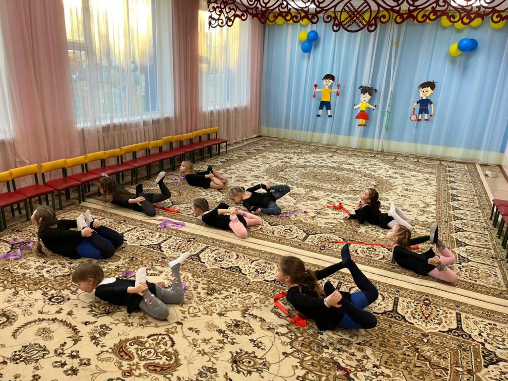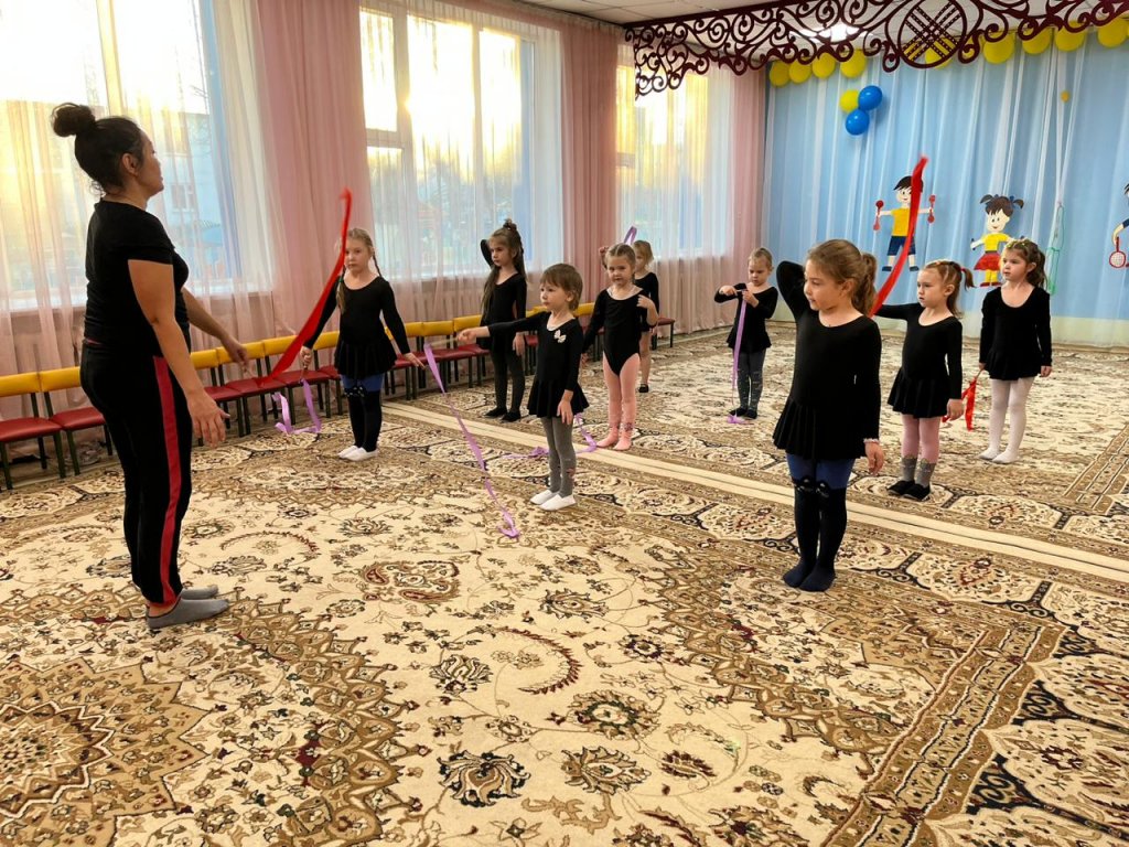 Көркем гимнастика! Қыздар оны қалай күтіп, жақсы көреді! Сиқырлы музыканың сүйемелдеуімен балалар сұлулық пен әсемдіктің бақытты еліне барады! Әрине, біз қыздырудан бастаймыз, содан кейін таспамен бұрын үйренген жаттығуларды еске түсіреміз. Қыздар өздерінің сымбаттылығын және қозғалыс дәлдігін көрсетеді. Жұмыс барысында балаларым үлкен ләззат алып, үлкен қуат алады.