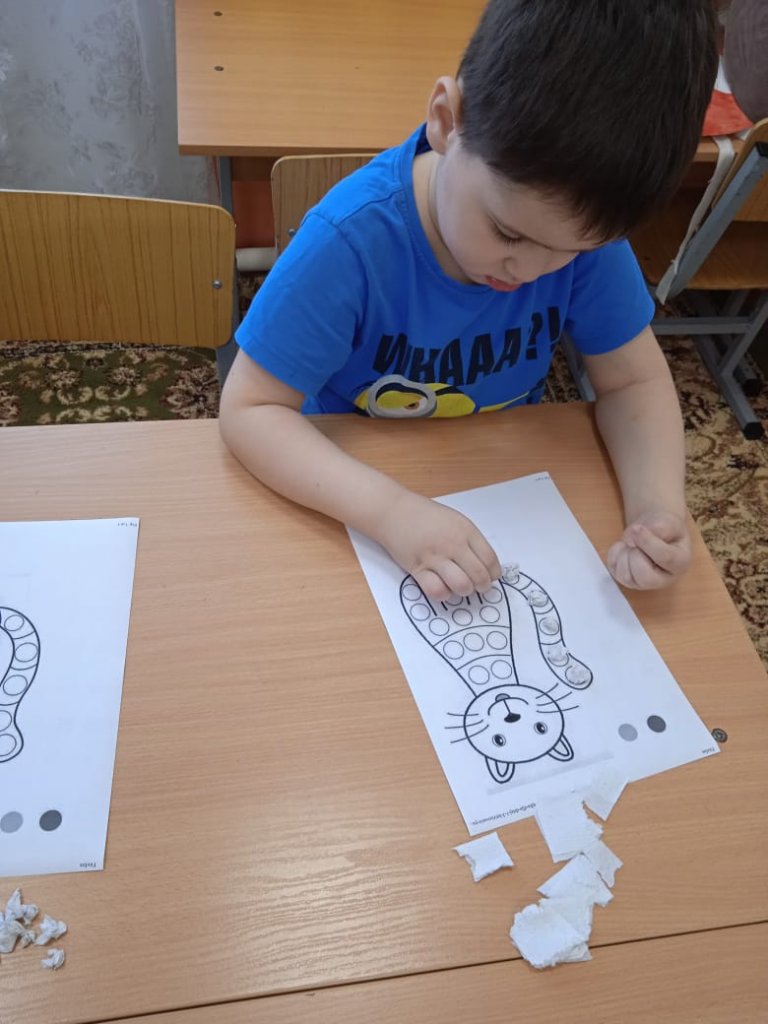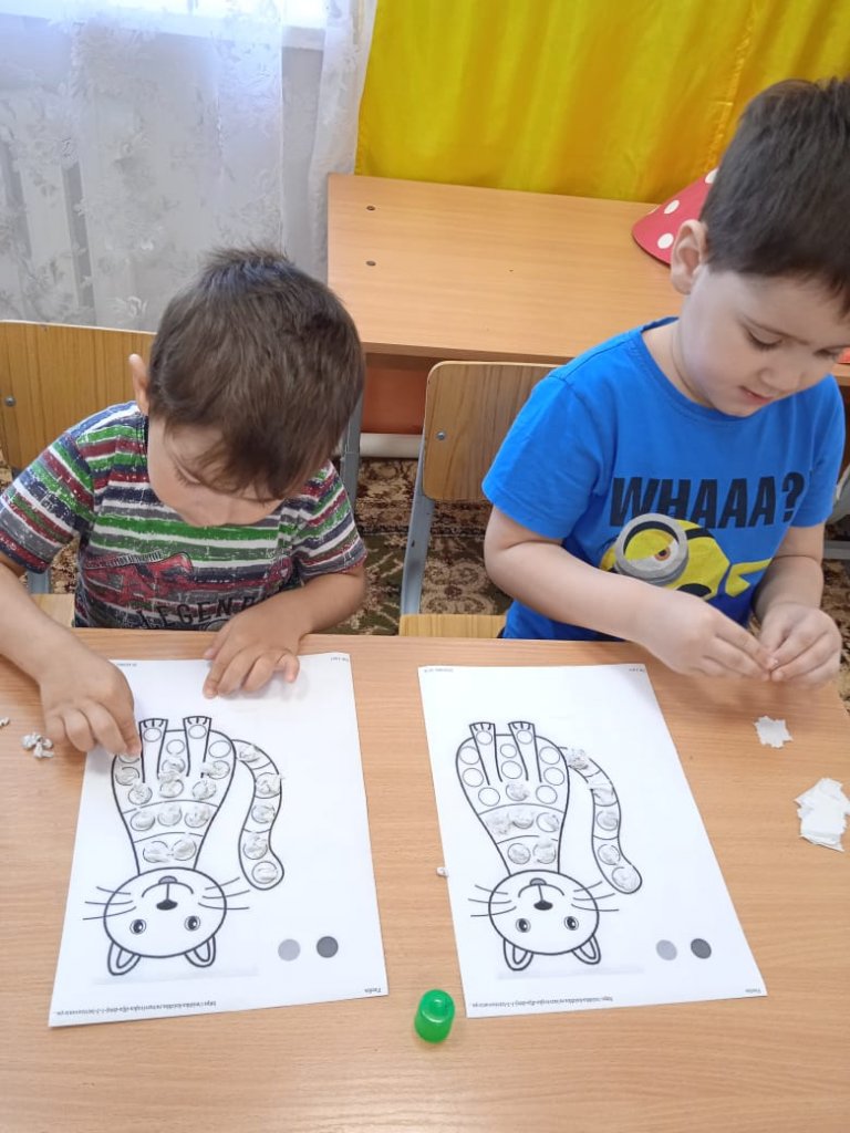 «Біздің сүйікті үй жануарлары» сабағында үлкен топтың балалары үй жануарларына күтім жасау ережелерін бекітті. Балалар оларға қалай қамқорлық көрсетеді. Үй жануарына деген сүйіспеншілігімізді шығармашылық тапсырмада да көрсетуге тырыстық. Жыртылған қағаз техникасын пайдалана отырып, біз үлпілдек мысықтың аппликациясын жасадық. Балалар өз жұмыстарын қызығушылықпен көрсетті...