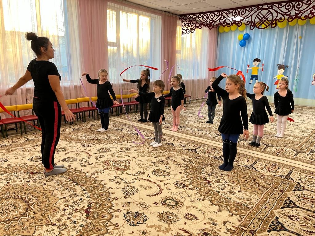 Көркем гимнастика! Қыздар оны қалай күтіп, жақсы көреді! Сиқырлы музыканың сүйемелдеуімен балалар сұлулық пен әсемдіктің бақытты еліне барады! Әрине, біз қыздырудан бастаймыз, содан кейін таспамен бұрын үйренген жаттығуларды еске түсіреміз. Қыздар өздерінің сымбаттылығын және қозғалыс дәлдігін көрсетеді. Жұмыс барысында балаларым үлкен ләззат алып, үлкен қуат алады.