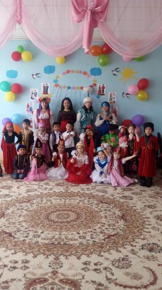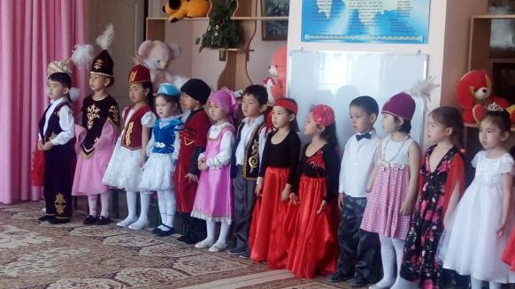 28 апреля прошел утренник посвященный дню единства нородов Казахстана - «Казахстан наш общий дом» с участием подготовительной и старшей группы. Ребята рассказывали стихотворения, пели песни на двух языках, отгадывали загадки на знание национальной кухки народов Казахстана. Педагоги в национальных костюмах исполнили частушки на казахском, русском и английском языках.