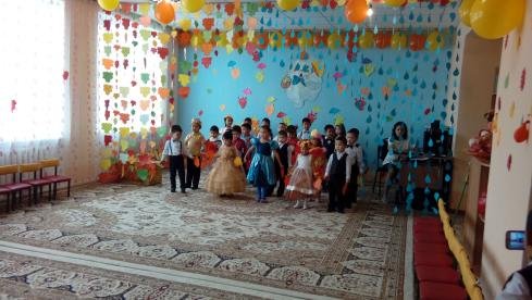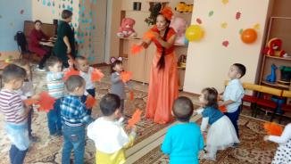 Балалар ертеңгілікте өз өнерлерін көрсетті. Бастарына ата-аналар саңырауқұлақтың қалпақтарын жасады. Балалар «Мухомор» биін биледі. Сонымен бірге «Жапырақтар» және «Саусақтар» биі болды. Қонаққа балаларға аю мен қоян кейіпкерлері келді. Олармен бірге «Сәбіздер мен бүрлер» және «Қолшатыр» ойынын ойнады. Күз мезгіліне сай