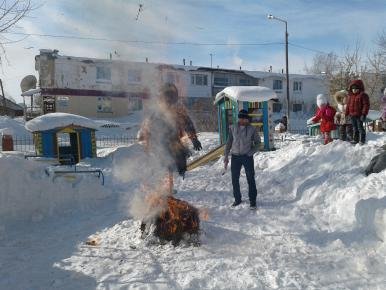 И как всегда угощение детей и гостей праздника блинами и сожжение чучела "Масленицы".