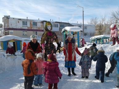 в национальные игры "Я Масленица", "Гори, гори ясно". Гостем праздника была современная Баба Яга, которая проводила с детьми игры.