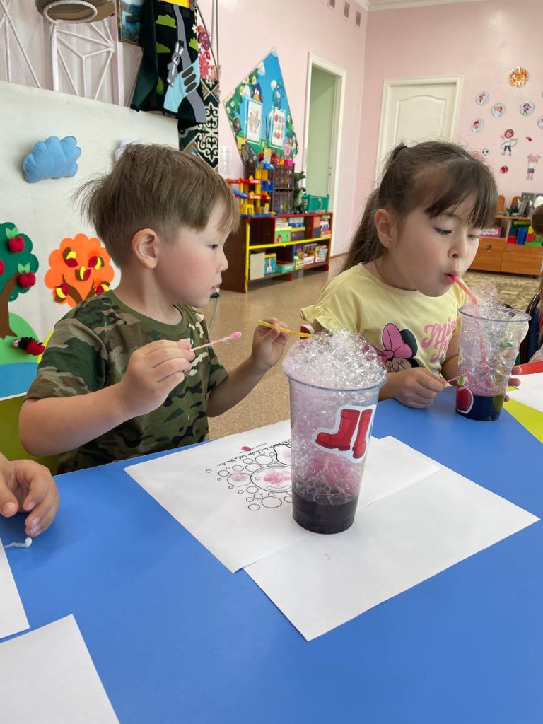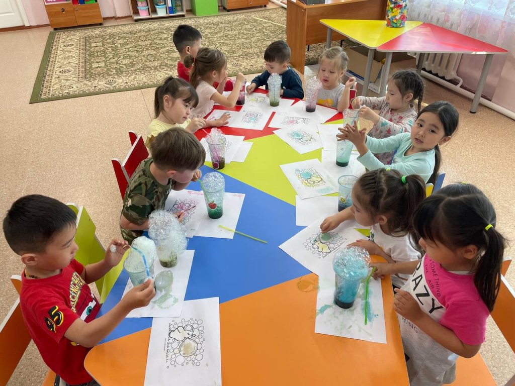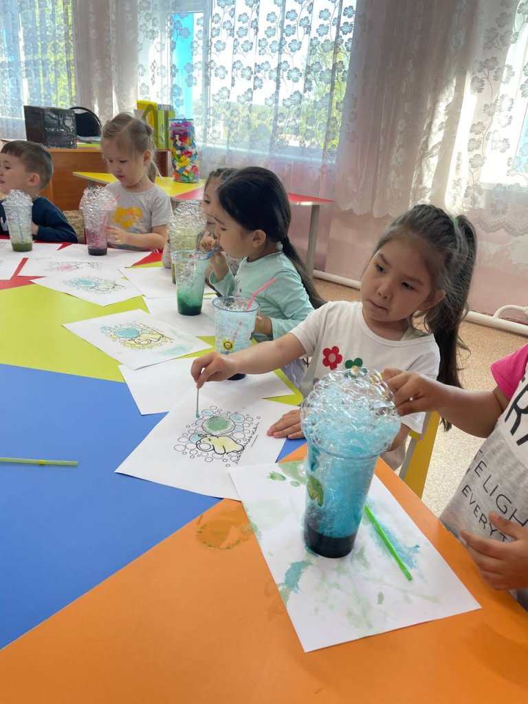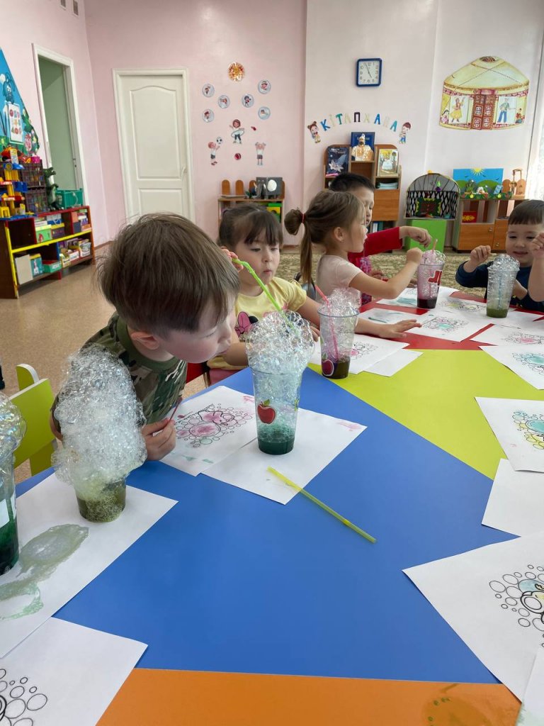 Топтық сабақ «Логопедпен сабын көпіршіктерімен сурет салу» Мақсаты: тыныс алуды дамыту, қолдың ұсақ моторикасын дамыту, қиялын дамыту. Сабын көпіршіктерімен сурет салу - балалар арасындағы ең сүйікті дәстүрлі емес әдістердің бірі. Ол сізді сиқырлы әлемге батырады және үлкен қуаныш пен рахат әкеледі. Қиялдар өмірге келеді және мүлдем жаңа жолмен қағаз парағына ауысады. Балалардың ойлау, есте сақтау, шығармашылық қабілеттері дамиды.