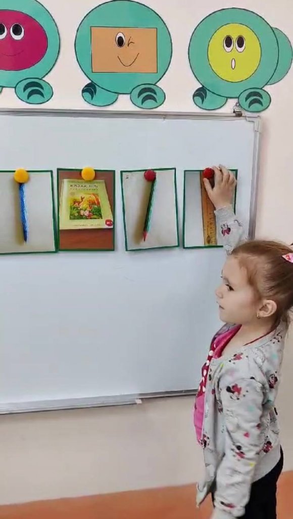 Балаларға суреттерді көрсетіп, не көріп тұрғандарын сұрау.Сөйлем айтуға үйрету. Асық, ою- өрнек түрлерін атап ,, сиқырлы сандықты,, толтыруға тырысады. Келесі суретті ( оқу құралдары)қолдана отырып сандықты дұрыс жауаптарымен толтырады да , мақсаттарына жетеді.